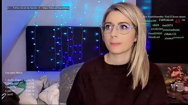 In Mar 2026, Lisaonthemoon spent a total of 65 hour(s) streaming in public, group, member or private chat on StripChat.